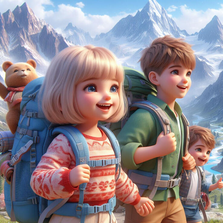 Wyruszyli z plecakami, namiotami i kijkami do chodzenia po górach. Każdego dnia odkrywali nowe miejsca, podziwiali piękne widoki i bawili się, podziwiając piękną naturę.Raz spotkali stado kóz górskich, które były bardzo ciekawe ludzi i podchodziły do nich bez obawy. Innym razem znaleźli małą jaskinię, w której mogli odpoczywać i opowiadać sobie historie.Pewnego dnia dotarli do najwyższego szczytu, na którym mogli zobaczyć całe Alpy.Był to niesamowity widok, który zapamiętali na całe życie.Natalia i Tomek byli szczęśliwi, że mogli przeżyć tak piękną przygodę razem ze swoimi rodzicami.